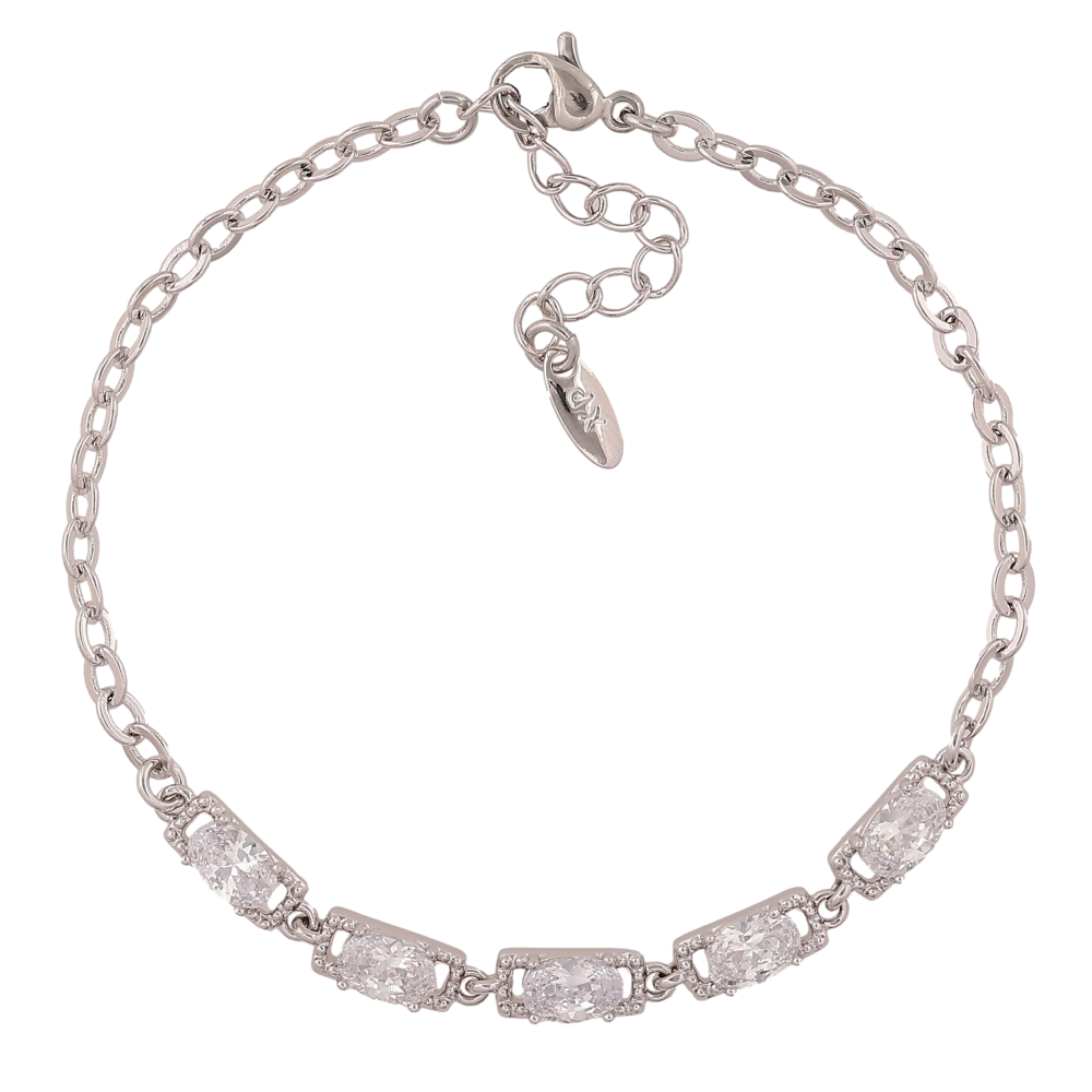 Браслет Xuping цвет Родий "Цепочка с кристальной вставкой" длина с доп. цепочкой 17-20см х 3-4мм