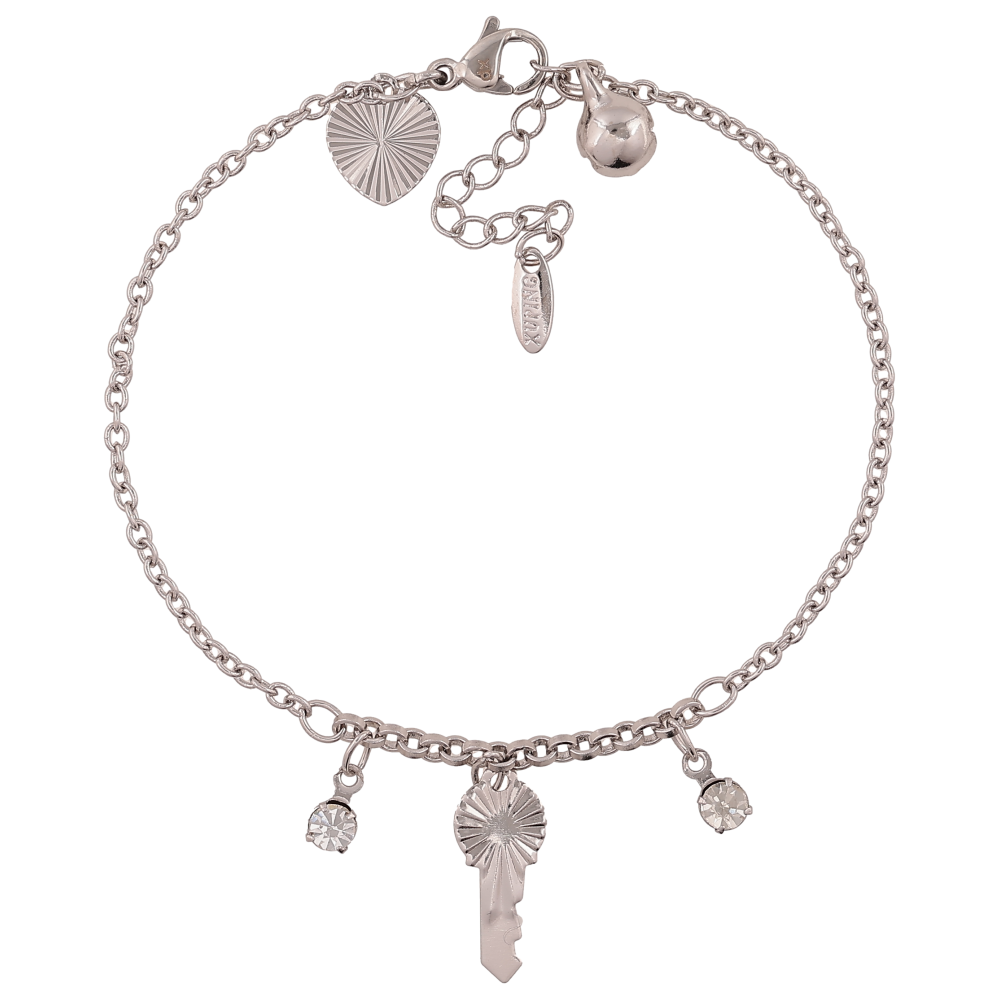 Браслет Xuping цвет Родий "Цепочка с ключиком и кристаллами" длина с доп. цепочкой 17.5-20.5см х 2-2.5мм