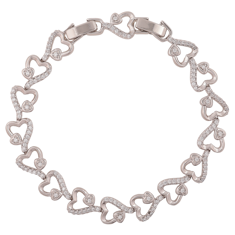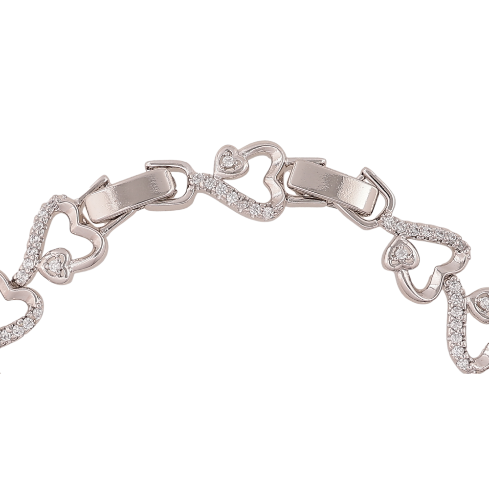 Браслет Xuping цвет Родий "Узор сердечки с кристаллами" длина с доп.замком 17,19см х 9мм
