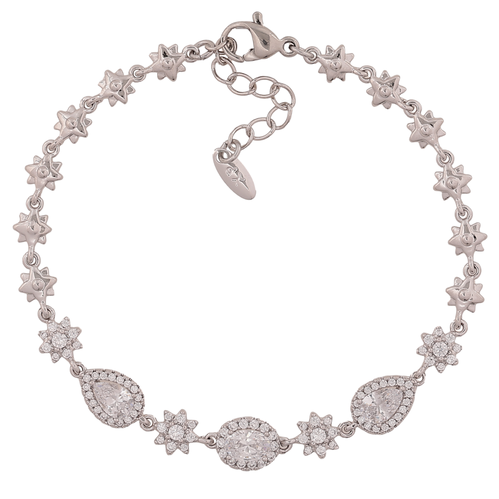 Браслет Xuping цвет Родий "Узор с кристаллами" длина с доп. цепочкой 17-20см х 5-7мм