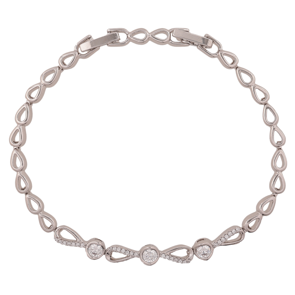 Браслет Xuping цвет Родий "Узор с кристаллами" длина с доп.замком 17,19.5см х 4-5мм