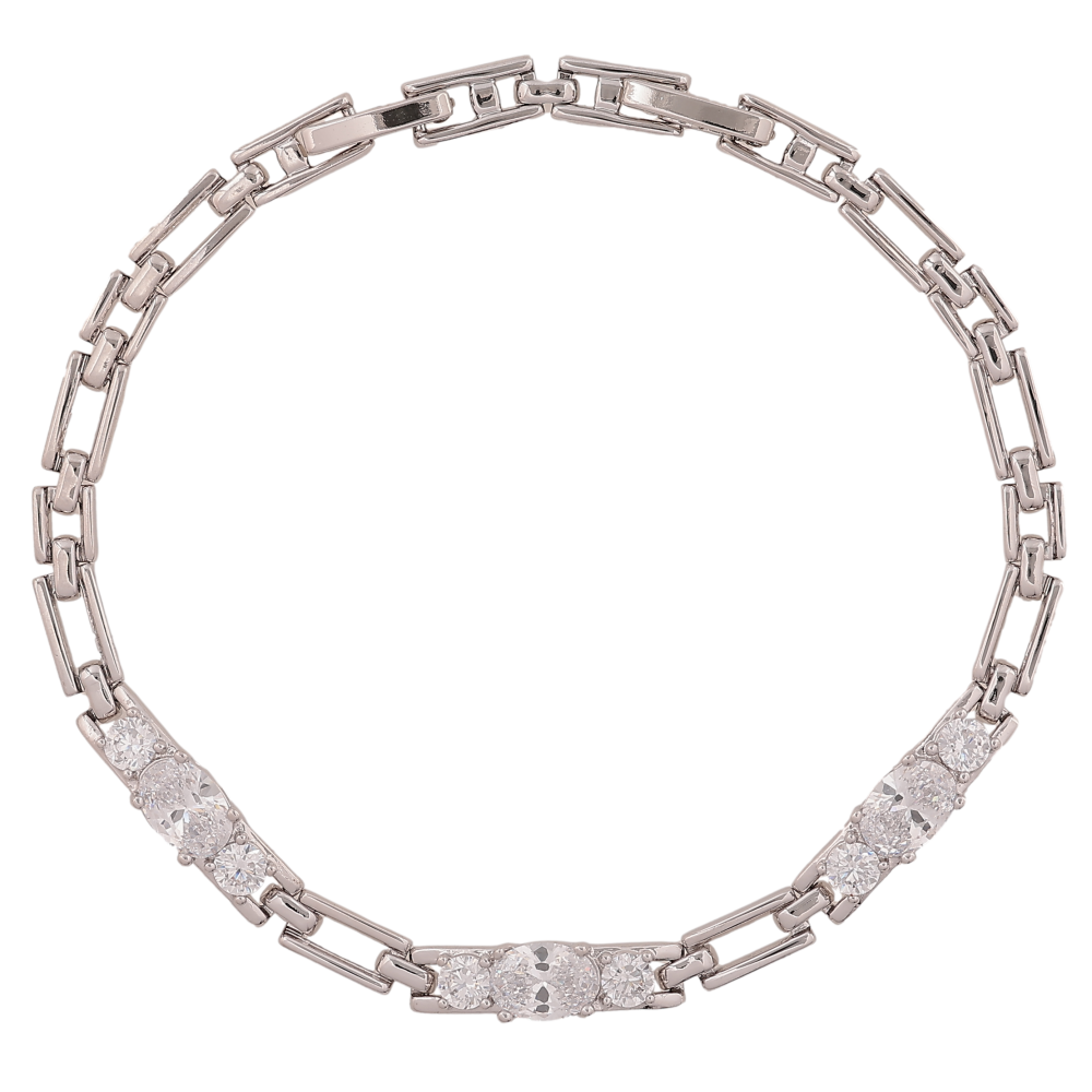 Браслет Xuping цвет Родий "Узор с кристаллами" длина с доп.замком 17.5,19.5см х 4-5мм