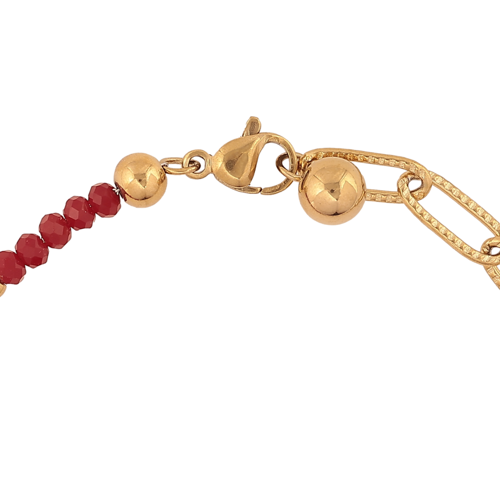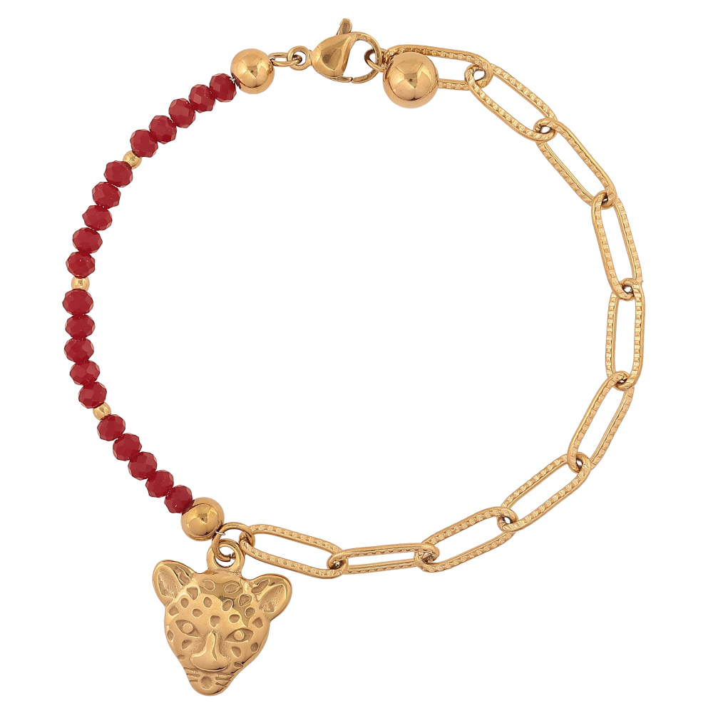 Браслет Xuping ТТМ Stainless Steel цвет 14К "Бордовые бусины с цепочкой и подвеской леопард" длина 18.5см х 2-4мм