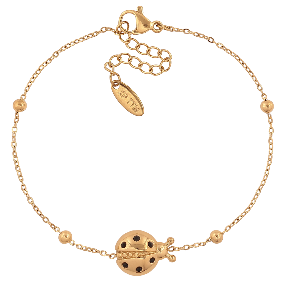 Браслет Xuping ТТМ Stainless Steel цвет 14К "Цепочка с божей коровкой" длина с доп. цепочкой 17.5-21см х 1-8мм
