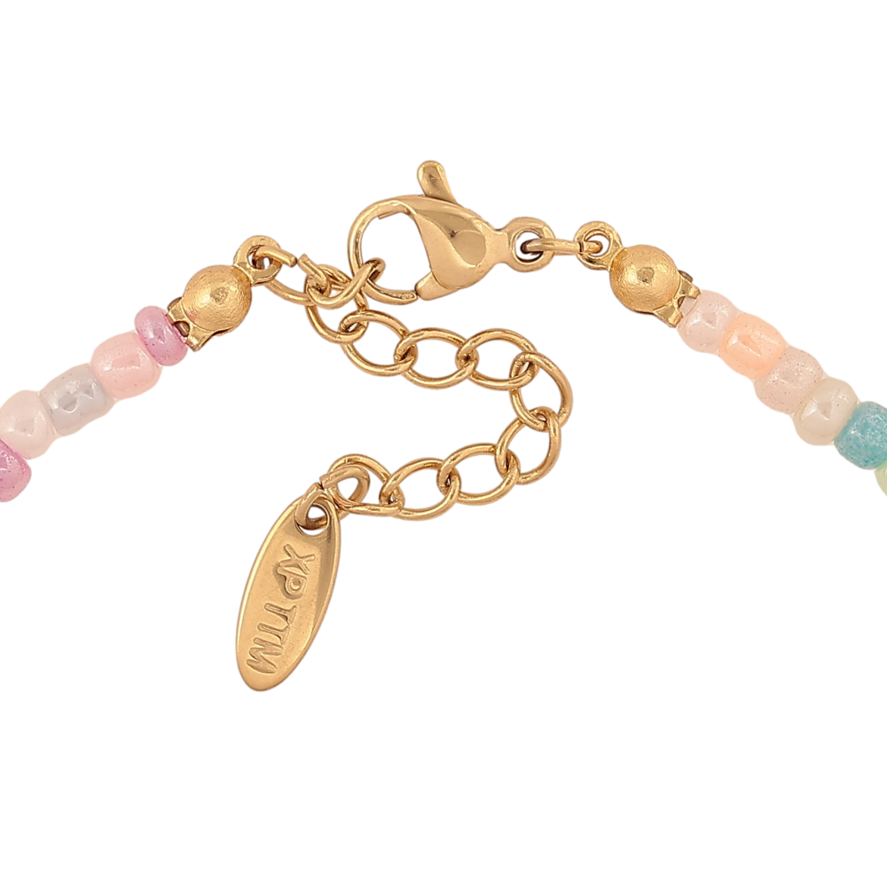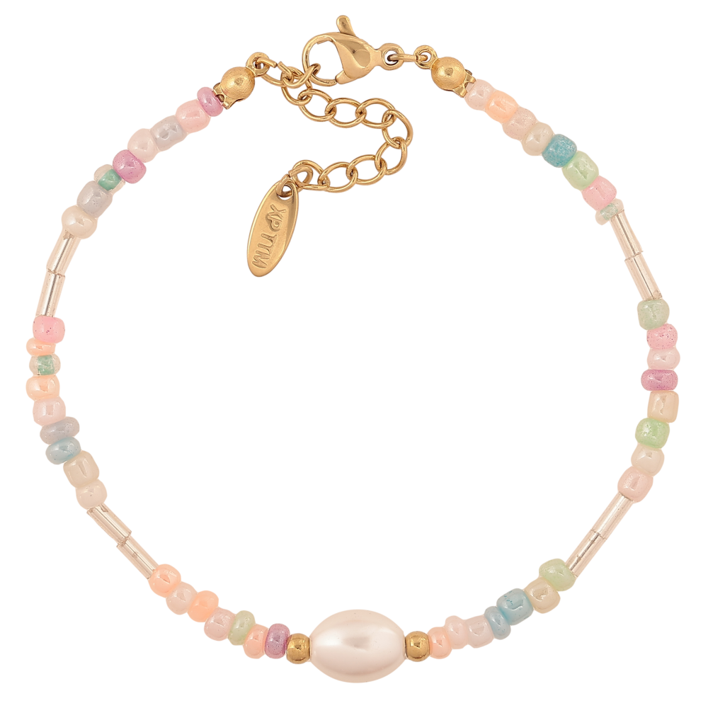 Браслет Xuping ТТМ Stainless Steel цвет 14К "Нить разноцветного бисера с жемчужной бусиной" длина с доп. цепочкой 18-21.5см х 2-7мм