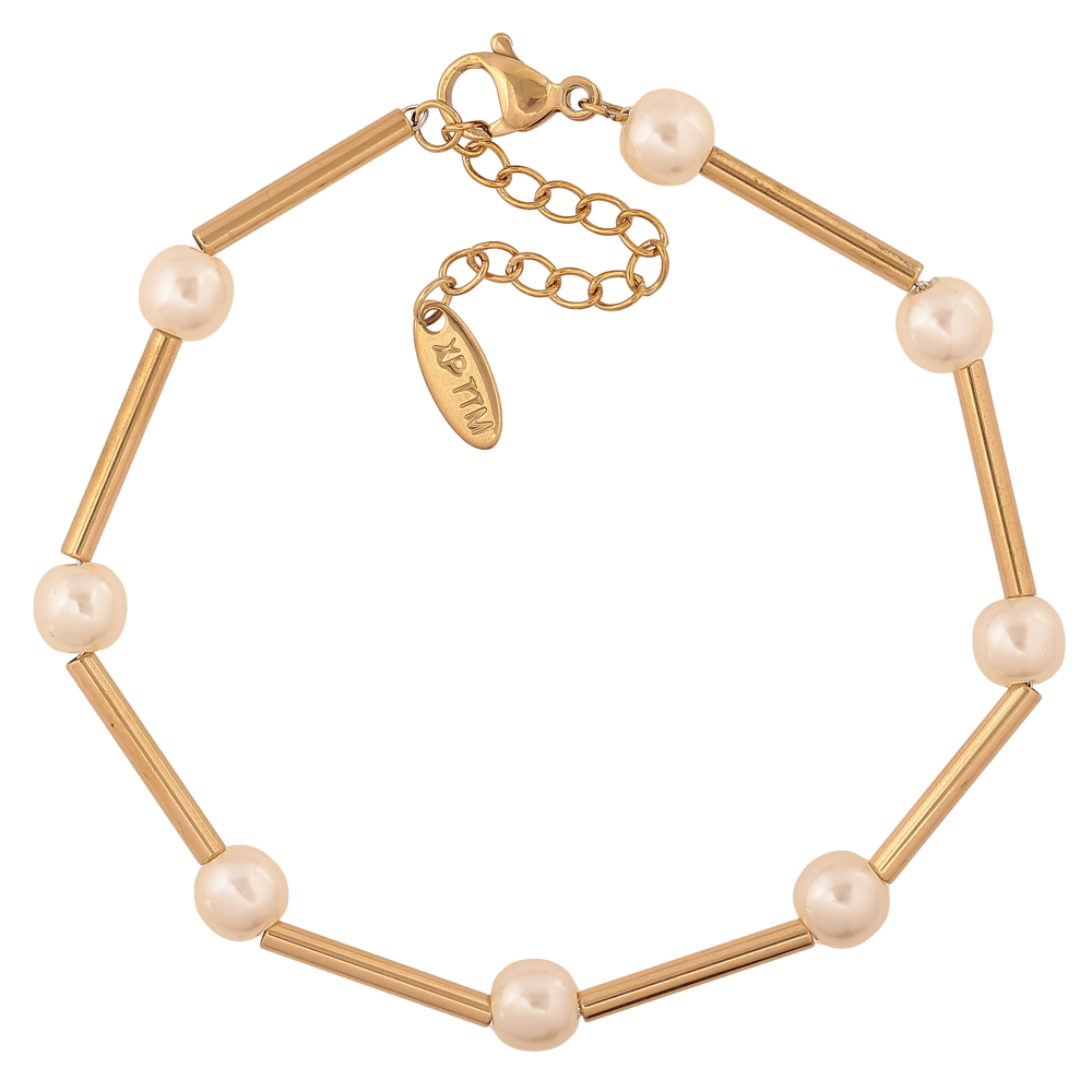 Браслет Xuping ТТМ Stainless Steel цвет 14К "Жемчужные бусины" длина с доп. цепочкой 18-21см х 2-6мм