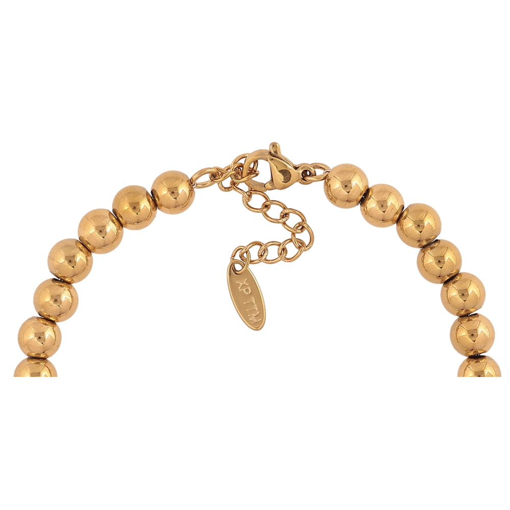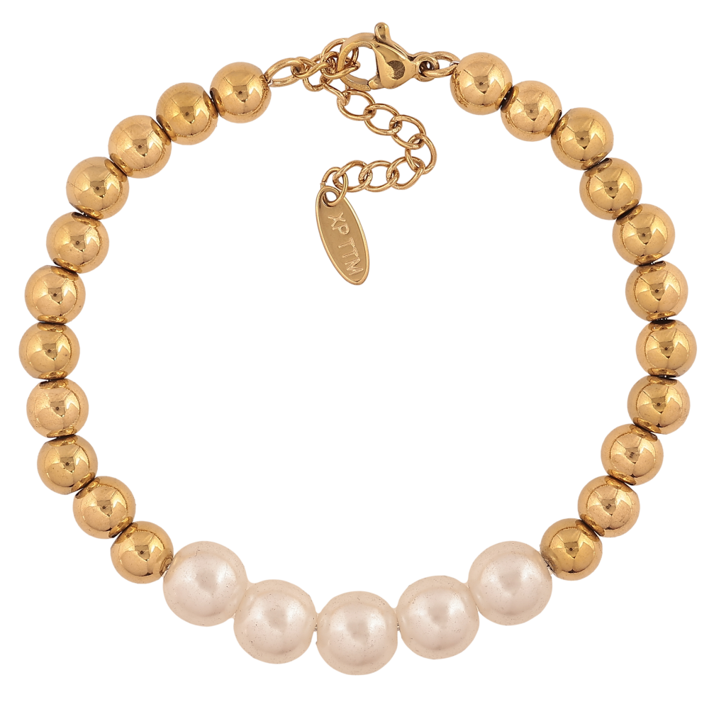 Браслет Xuping ТТМ Stainless Steel цвет 14К "Золотисто-жемчужные бусины" длина с доп. цепочкой 17-21см х 6-8мм