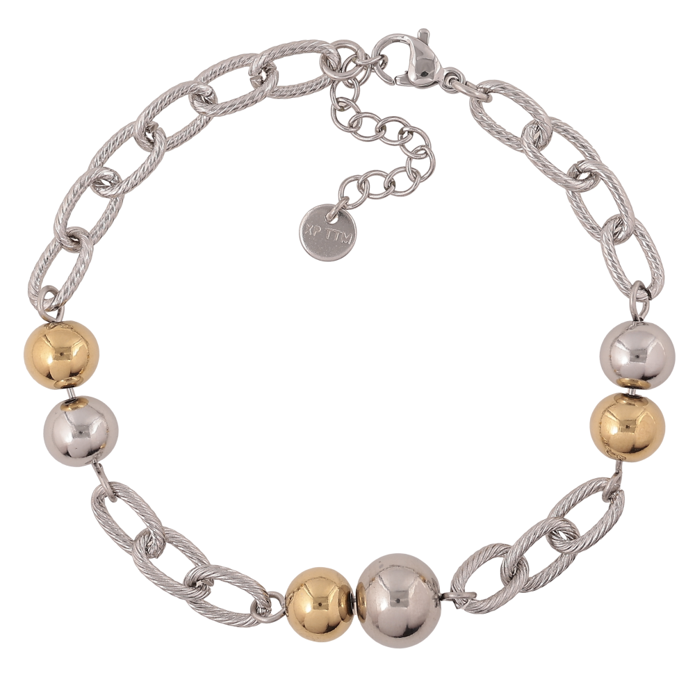 Браслет Xuping ТТМ Stainless Steel цвет Родий + 14К "Цепочка с бусинами" длина с доп. цепочкой 19-22.5см х 6-10мм