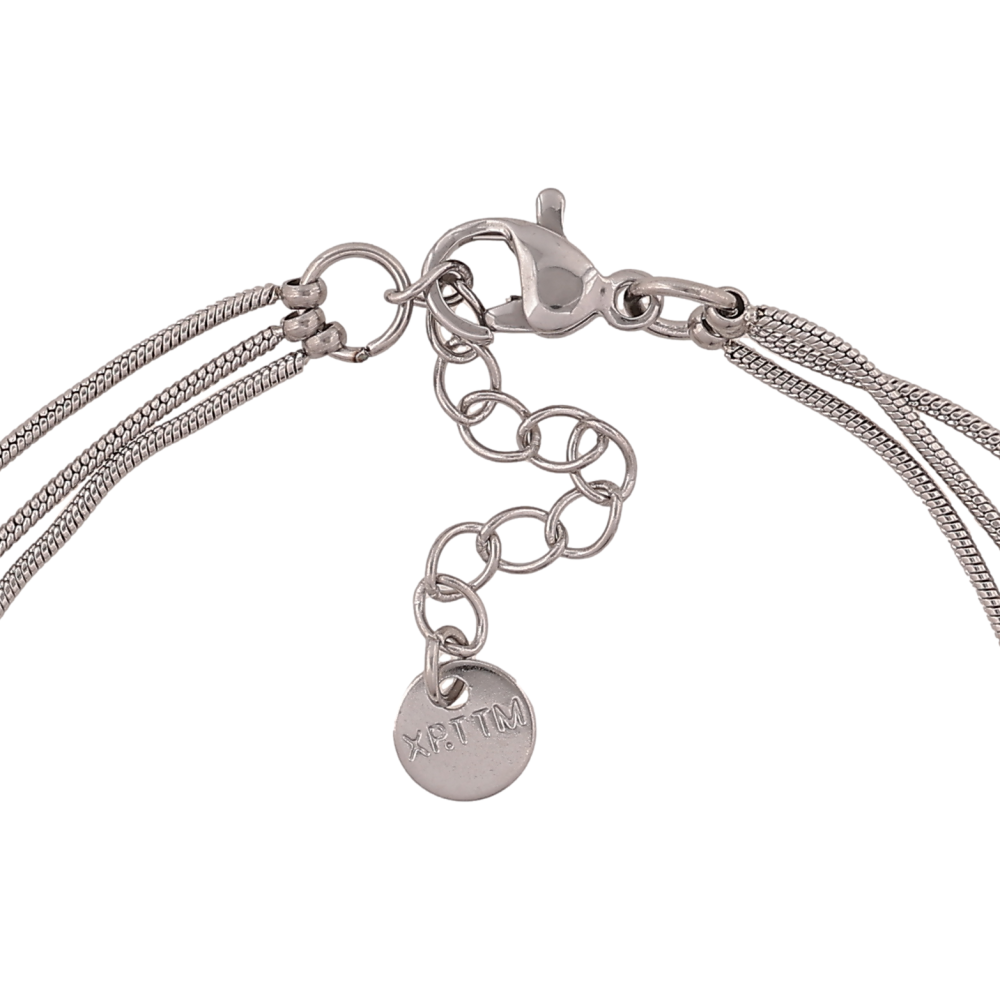 Браслет Xuping ТТМ Stainless Steel цвет Родий "Тройная цепочка с бусинами" длина с доп. цепочкой 17-20см х 3мм