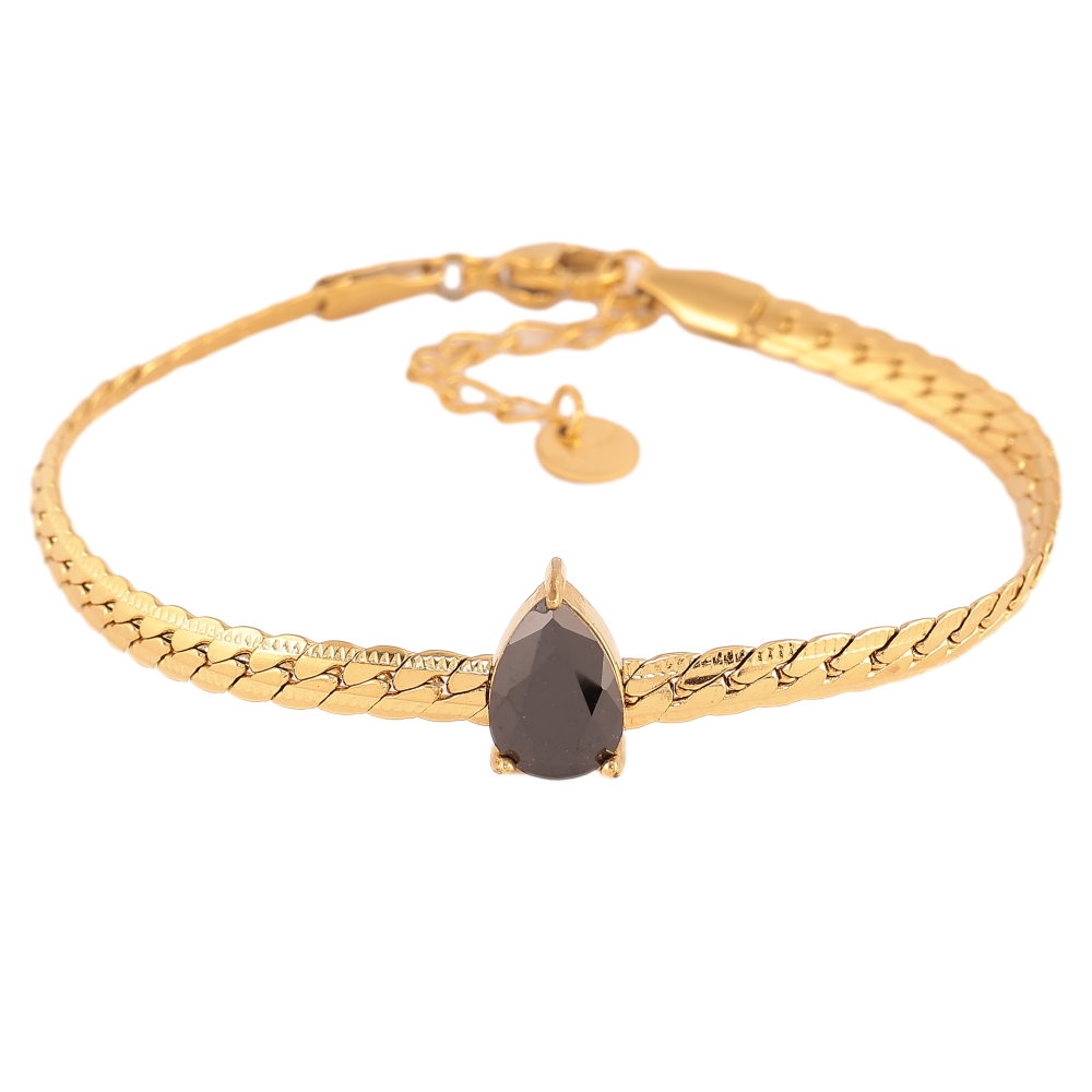 Браслеты Нержавеющая сталь "Цепочка с кристальной черной капелькой" размер с доп. цепочкой 17-20см х 4мм