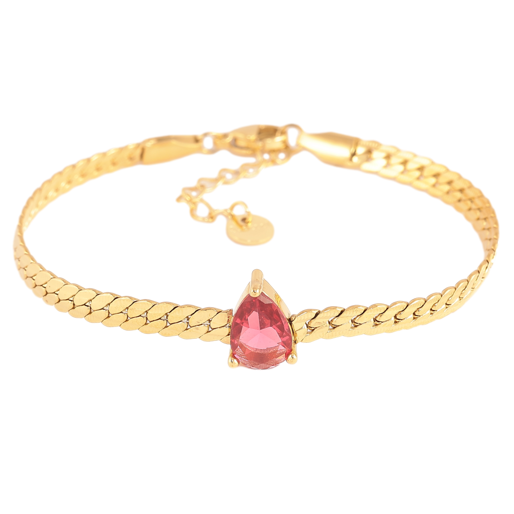 Браслеты Нержавеющая сталь "Цепочка с кристальной розовой капелькой" размер с доп. цепочкой 17-20см х 4мм