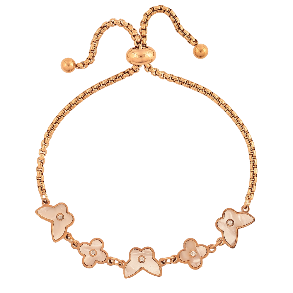 Браслет Нержавеющая сталь "Цепочка с клевером и бабочками" на затяжке размер 10-21см х 2-8мм