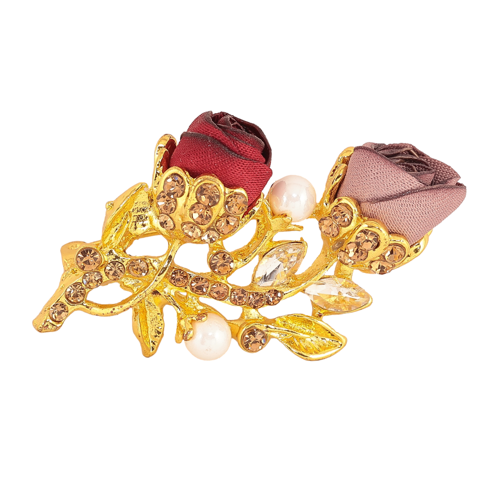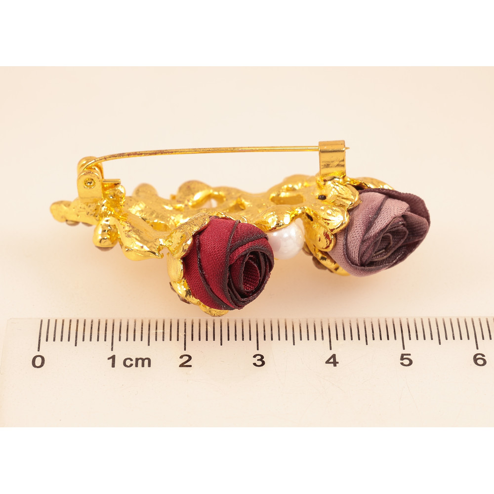 Брошь "Бежевый и красный цветочки"