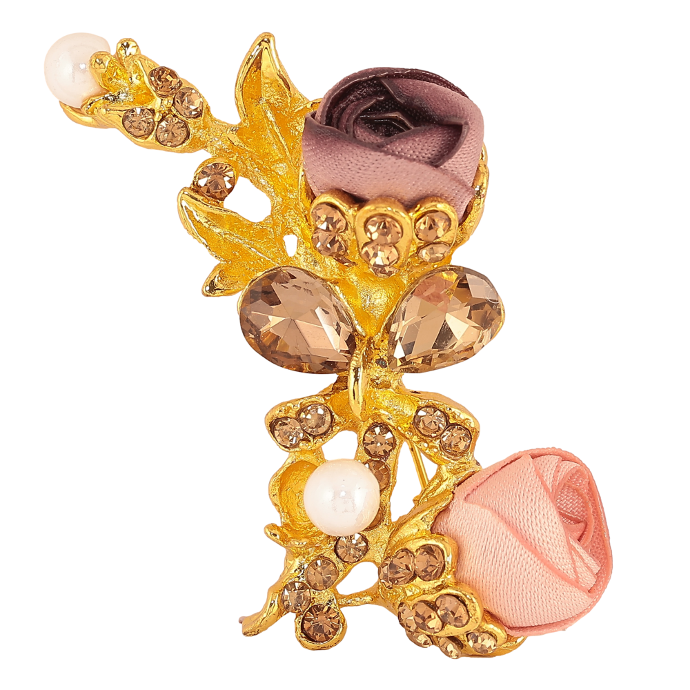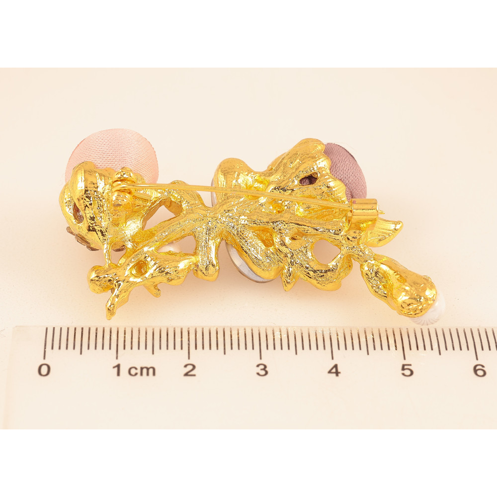 Брошь "Бежевый и розовый цветочки"