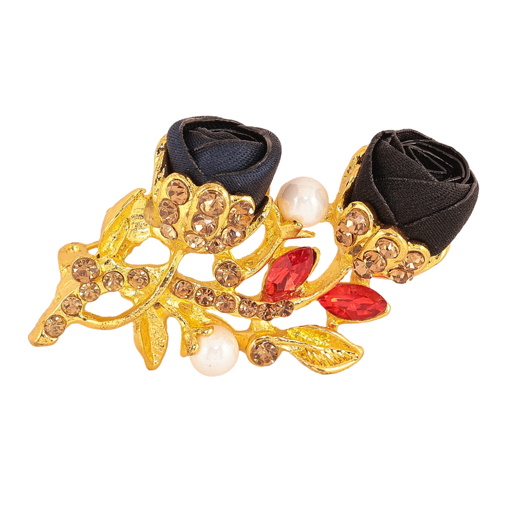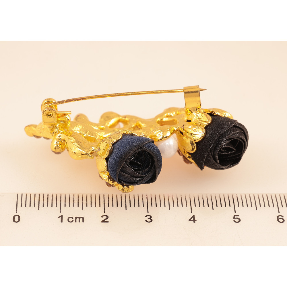 Брошь "Черный и синий цветочки"