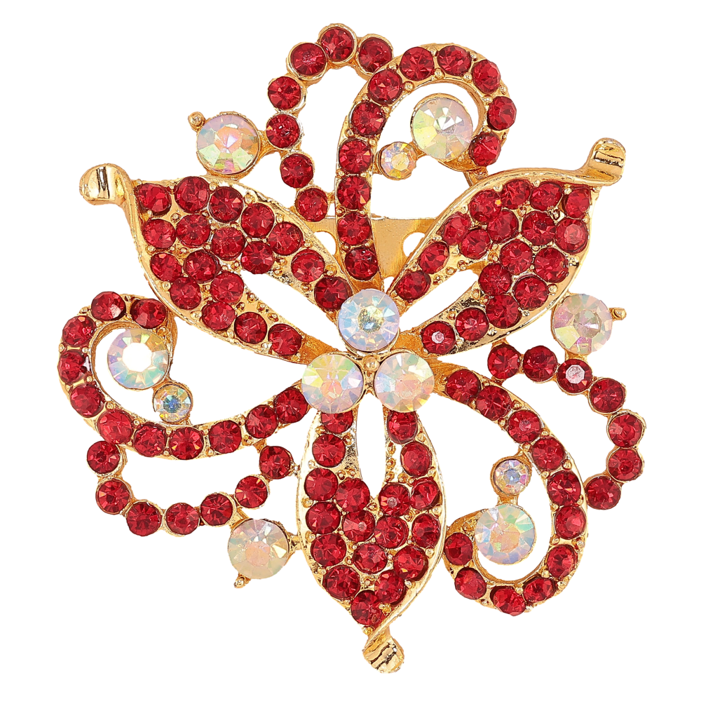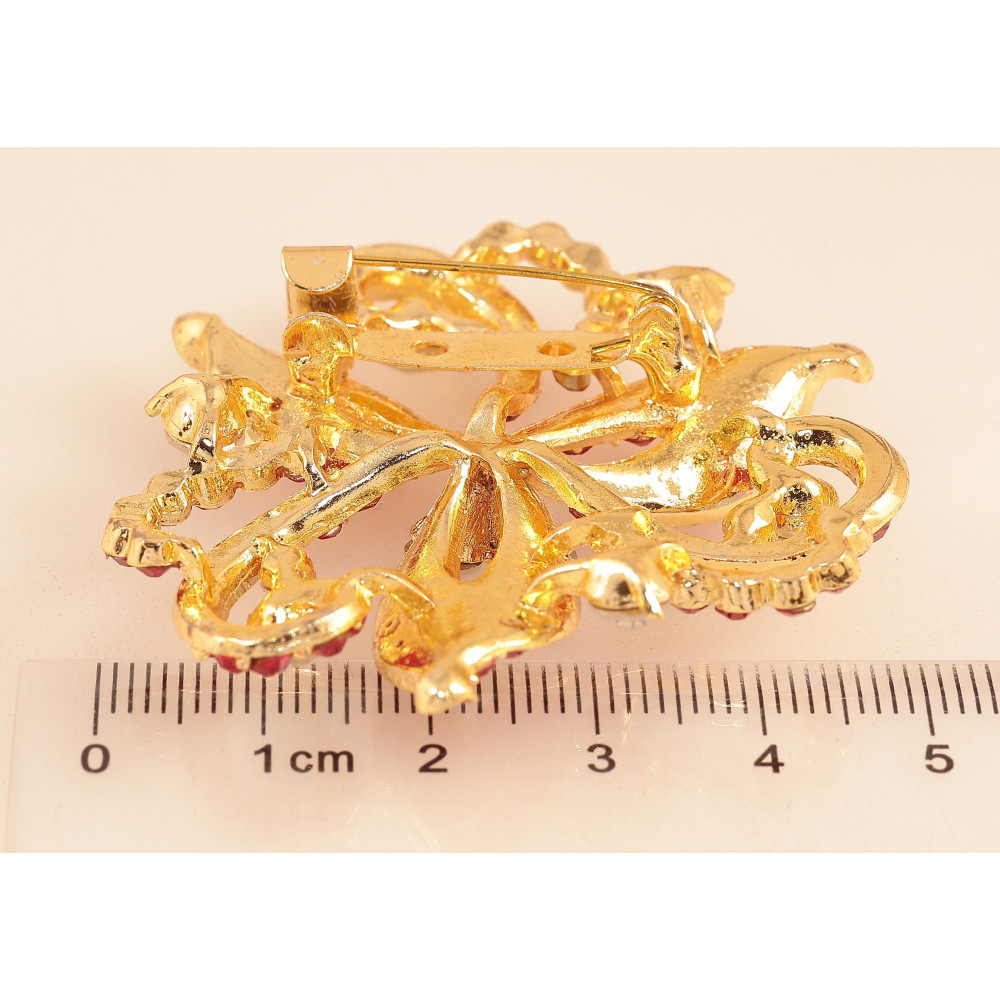 Брошь "Цветок с красными стразами"