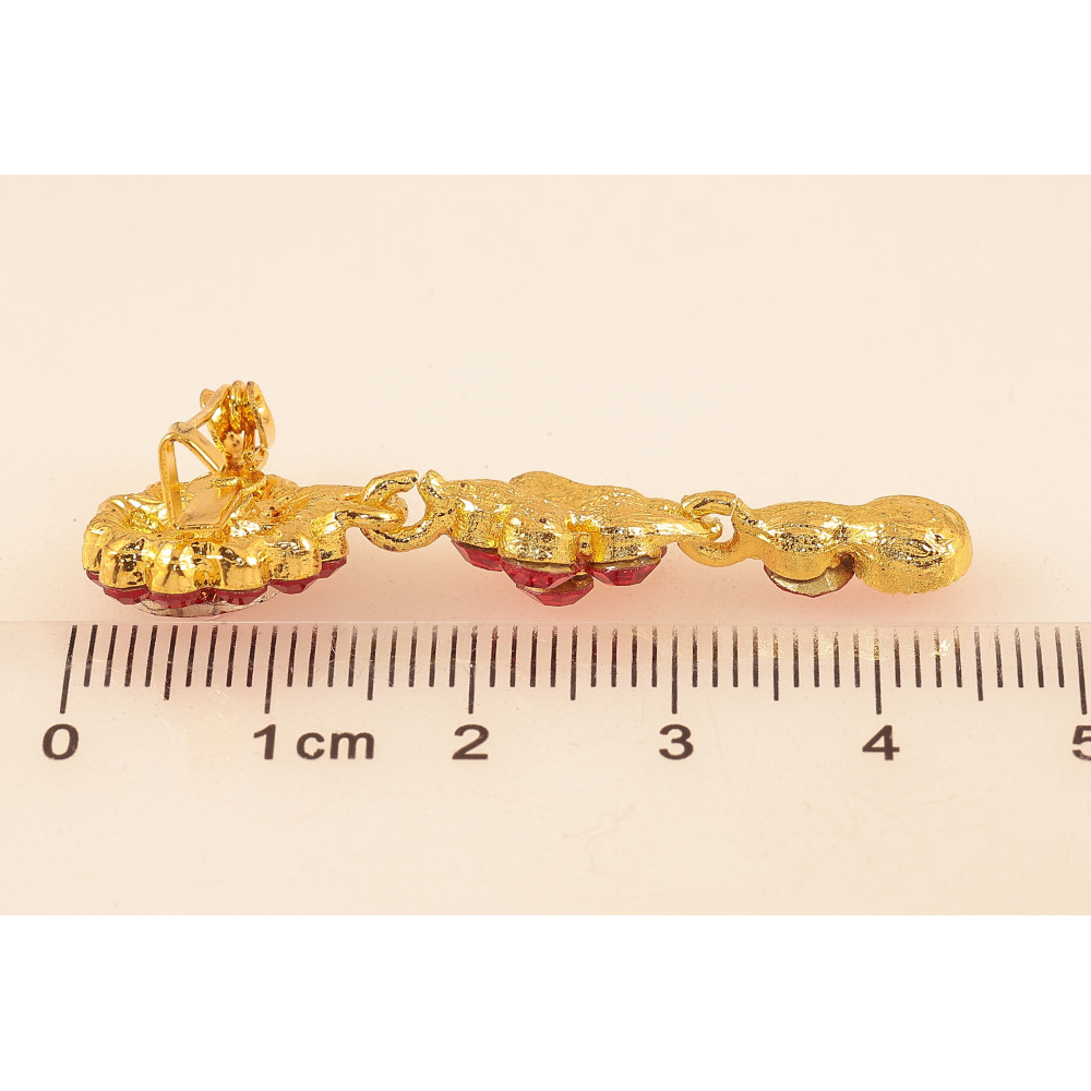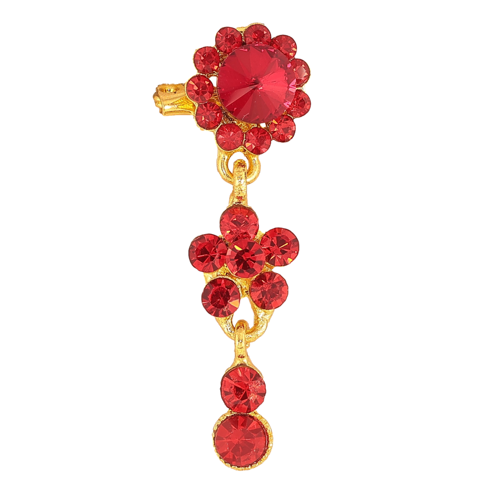 Брошь "Цветок с красными стразами и подвесками"