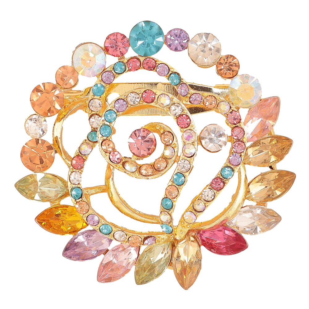 Брошь "Цветок с разноцветными стразами"