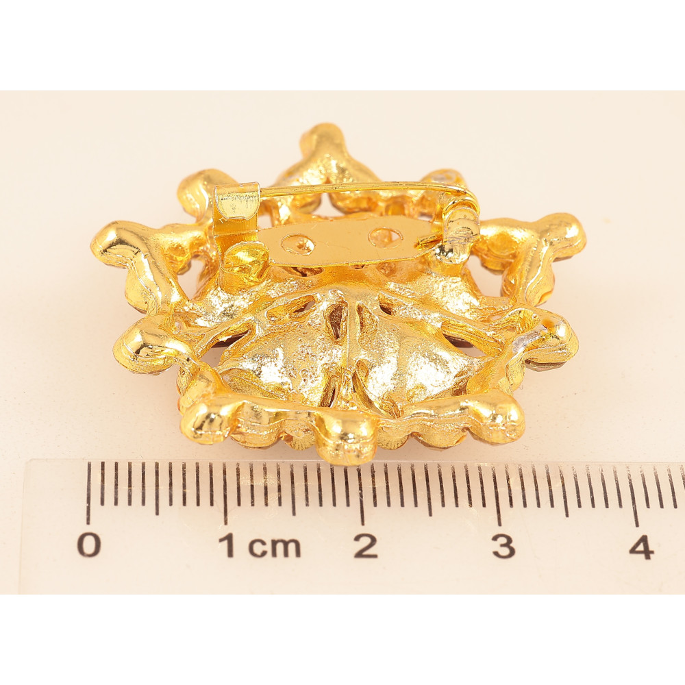 Брошь "Цветок с золотистыми стразами"