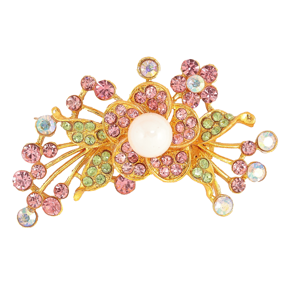 Брошь "Цветочная композиция с розово-зелеными стразами"