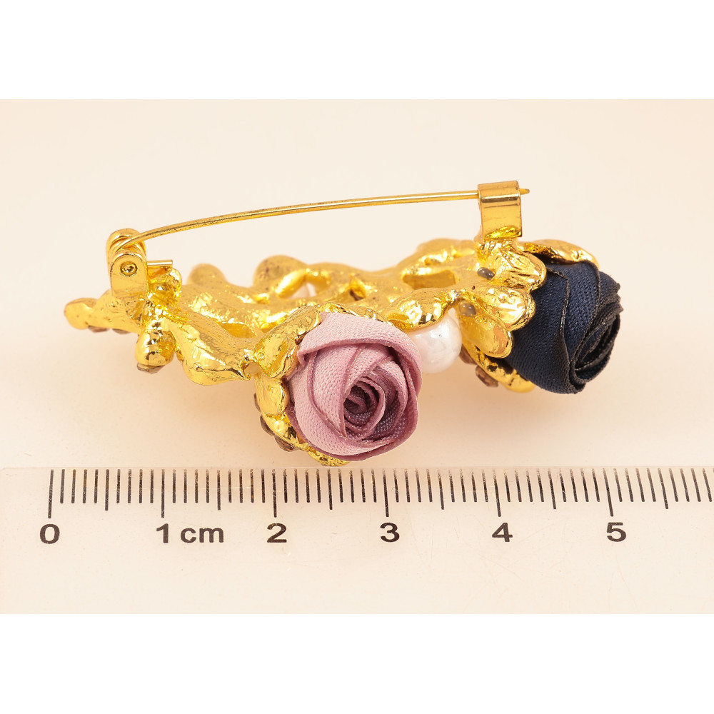 Брошь "Розовый и синий цветочки"