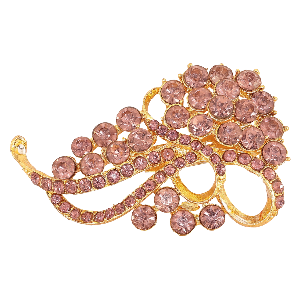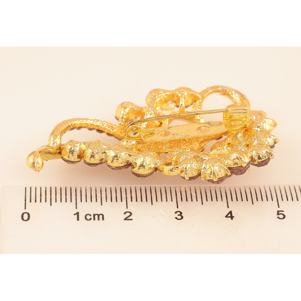 Брошь "Узор с бордовыми стразами"