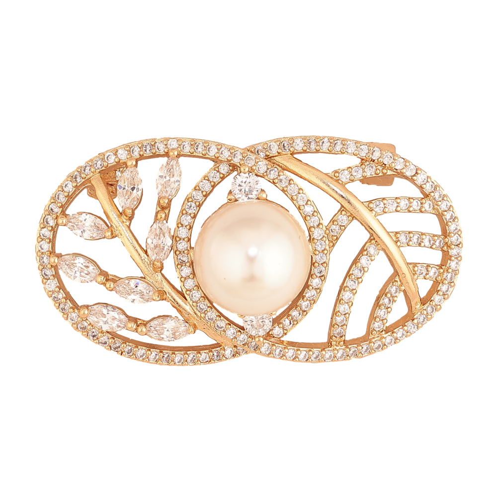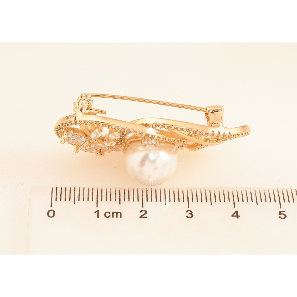 Брошь Xuping цвет Позолота 18K "Композиция с инкрустацией кристаллами и жемчужиной"