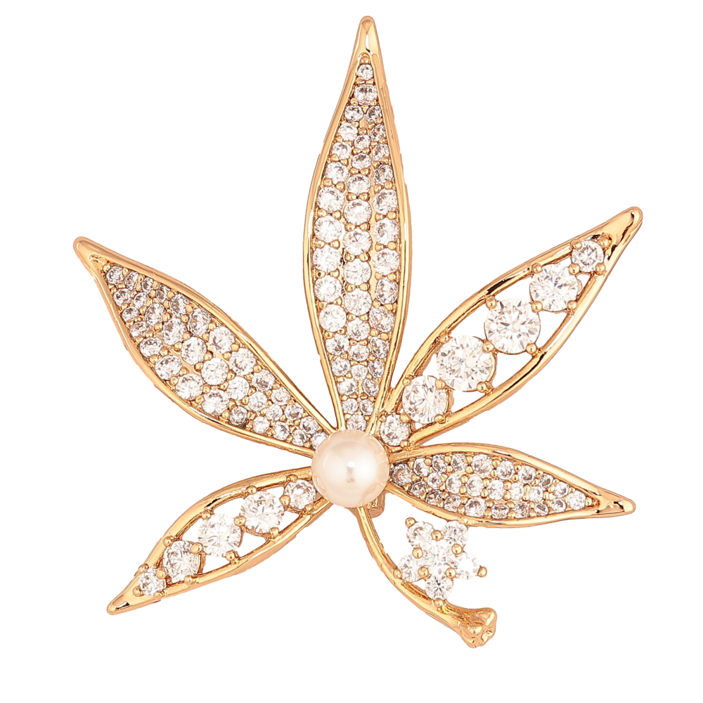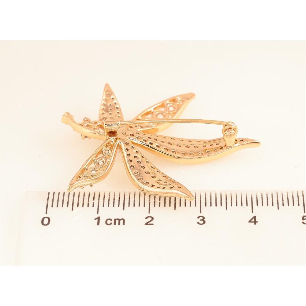 Брошь Xuping цвет Позолота 18K "Листик с инкрустацией кристаллами и жемчужиной"