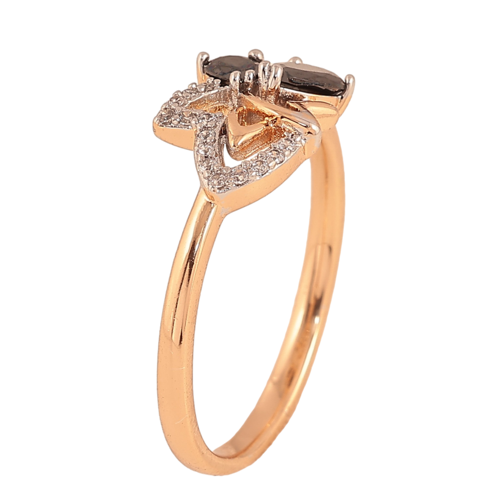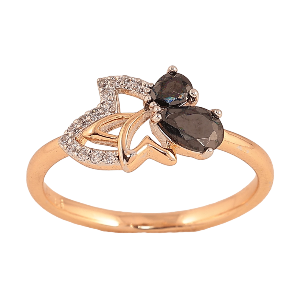 Кольцо Xuping цвет Позолота 18К + Родий "Листик с черными кристаллами"