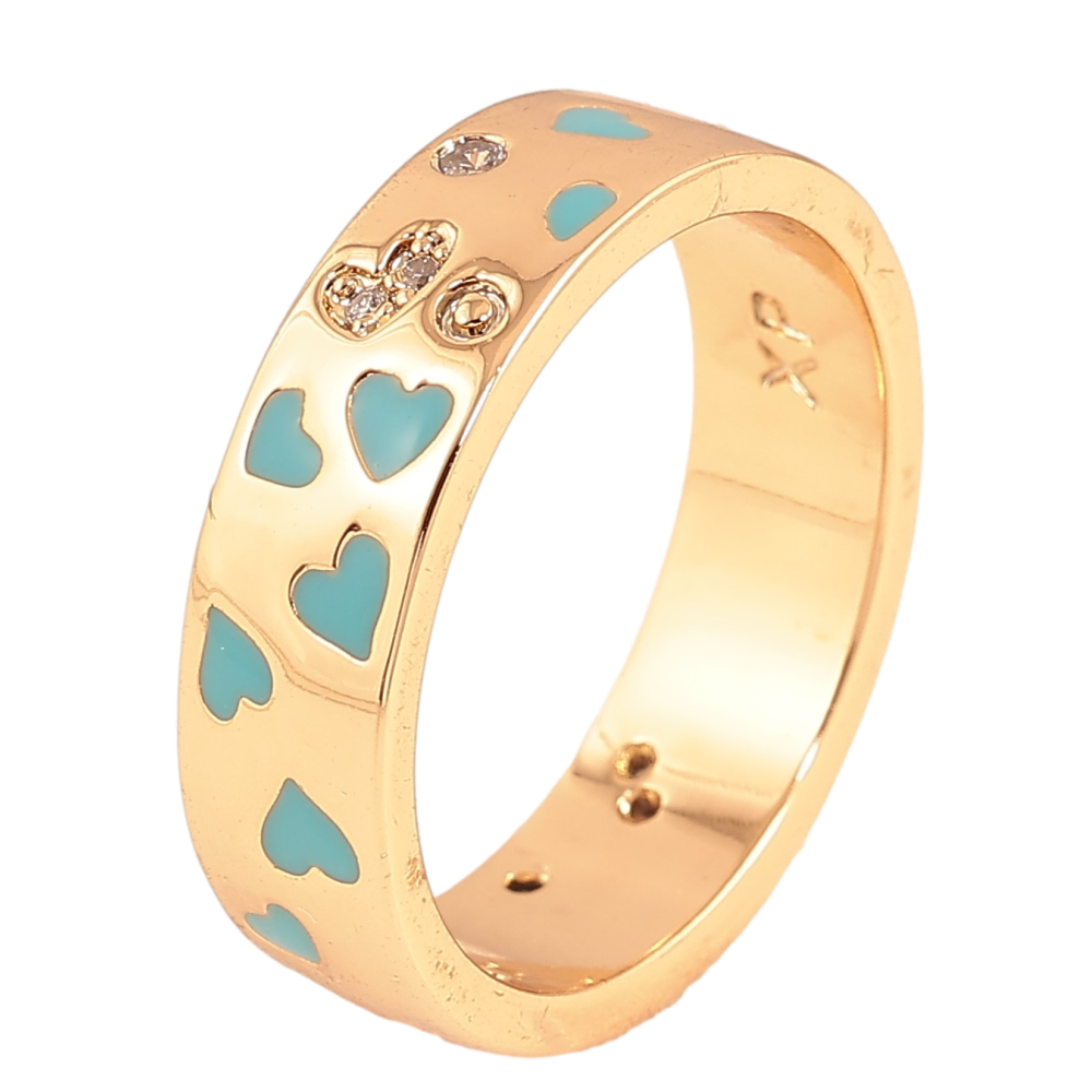 Кольцо Xuping цвет Позолота 18K "Узор голубые сердечки и кристаллы", шир. 6мм