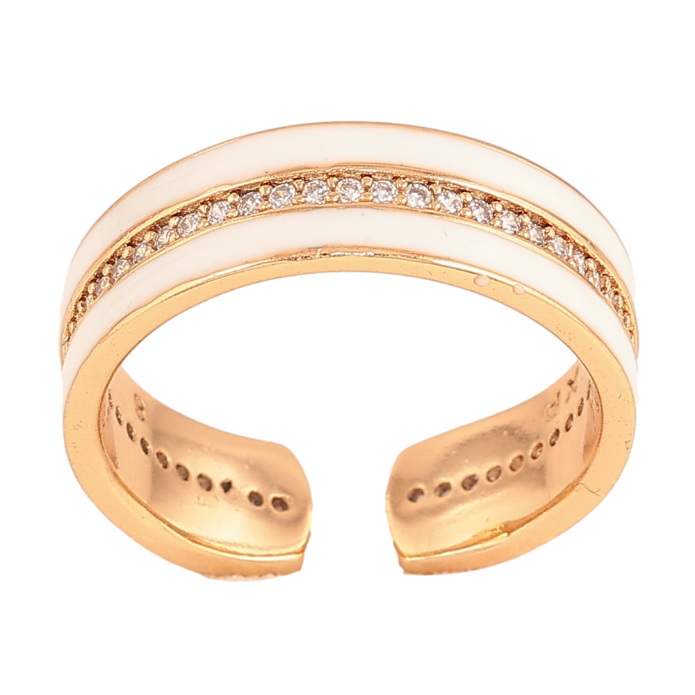 Кольцо Xuping цвет Позолота 18K "Узор с кристаллами и белой эмалью" шир. 6мм