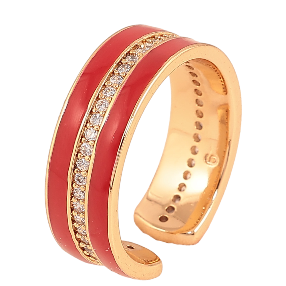 Кольцо Xuping цвет Позолота 18K "Узор с кристаллами и красной эмалью" шир. 6мм