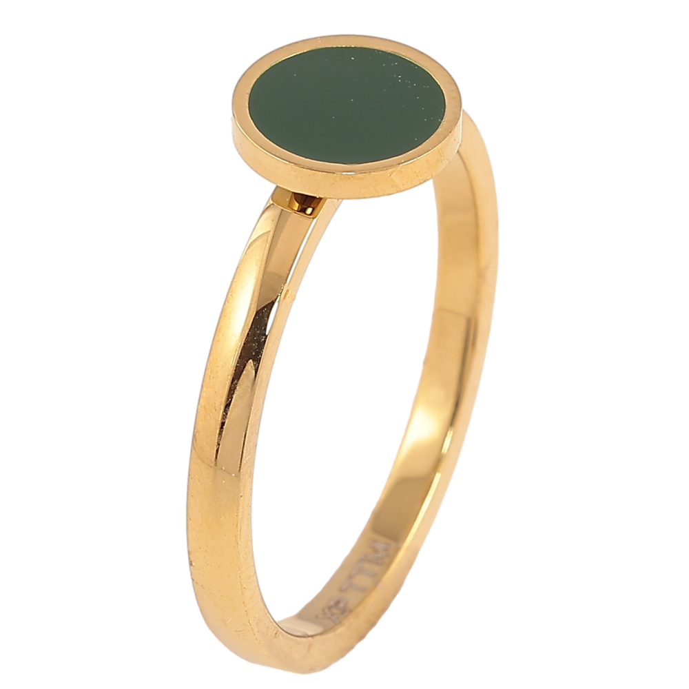 Кольцо Xuping TTM Stainless Steel цвет 14К "Круг с зеленой эмалью"