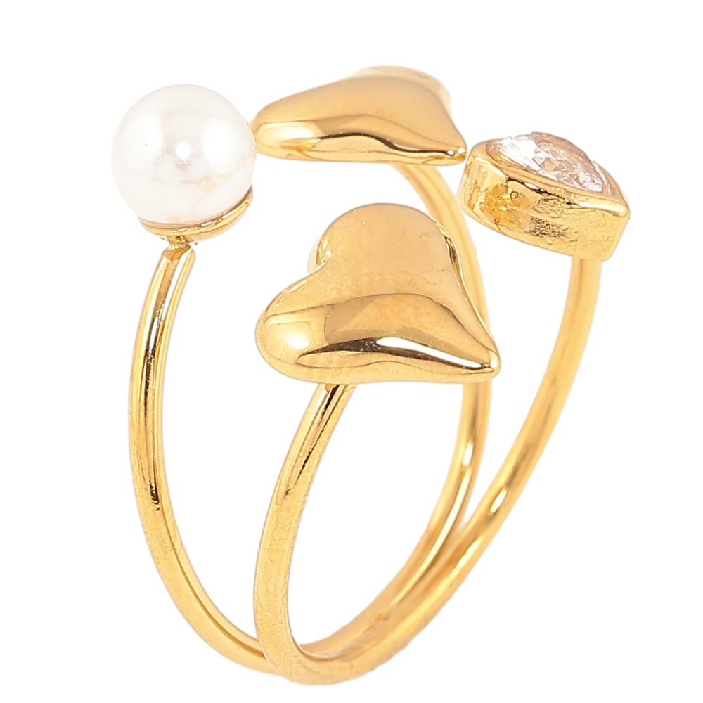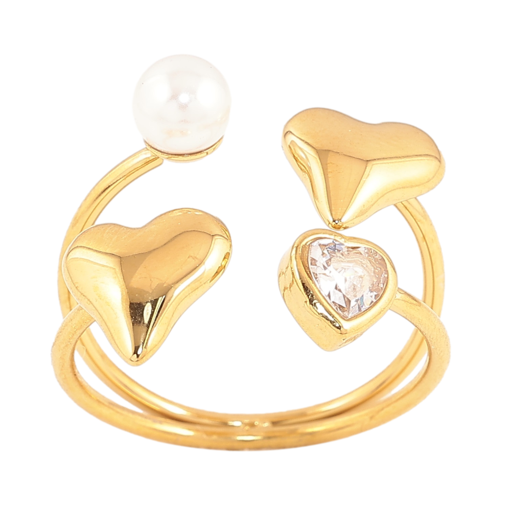 Кольцо Xuping TTM Stainless Steel цвет 14К "Сердечки с жемчужиной и кристаллом"