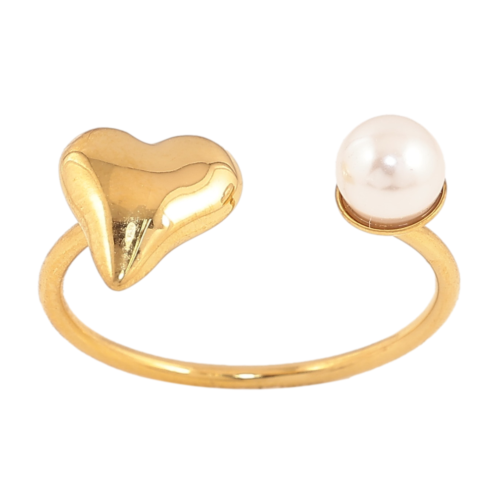 Кольцо Xuping TTM Stainless Steel цвет 14К "Сердечко с жемчужиной"