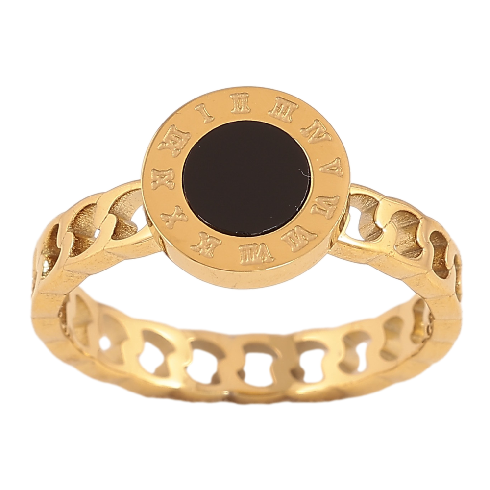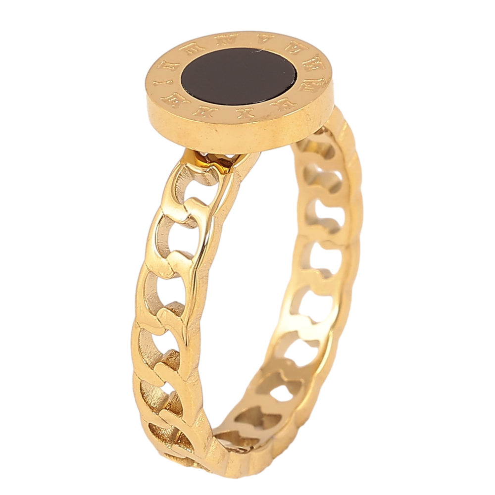 Кольцо Xuping TTM Stainless Steel цвет 14К "Циферблат с черной вставкой"