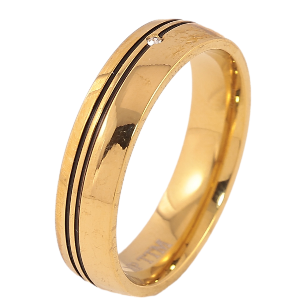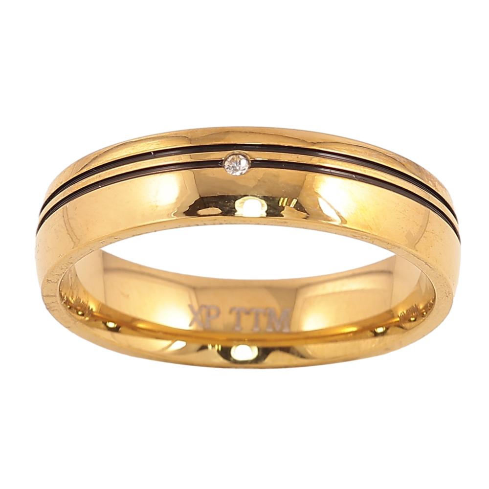 Кольцо Xuping TTM Stainless Steel цвет 14К "Узор черной эмалью и кристаллом" шир. 5мм