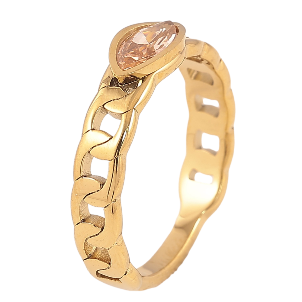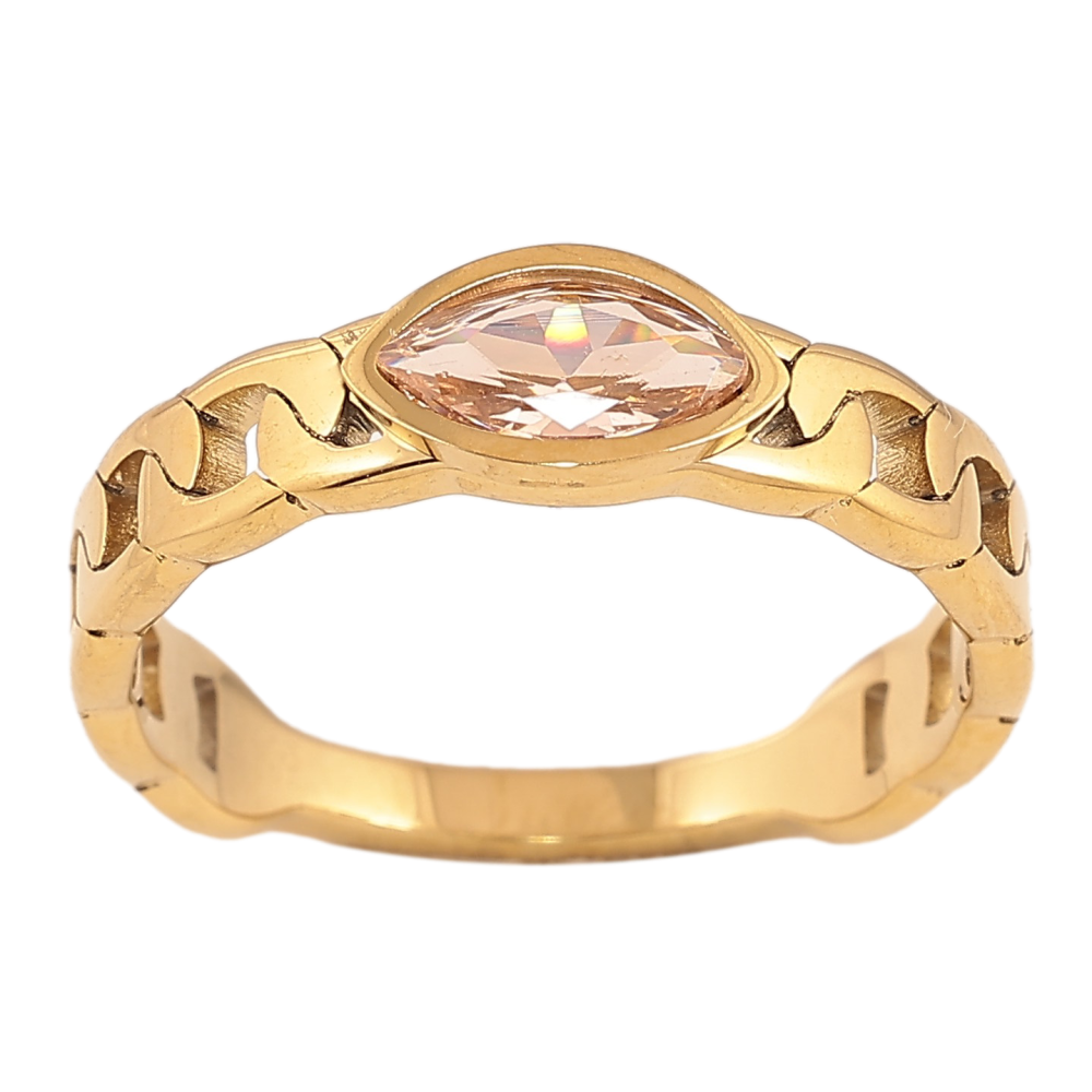 Кольцо Xuping TTM Stainless Steel цвет 14К "Узор цепочка с розовым кристаллом"