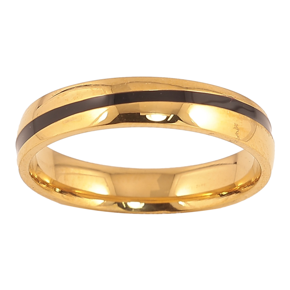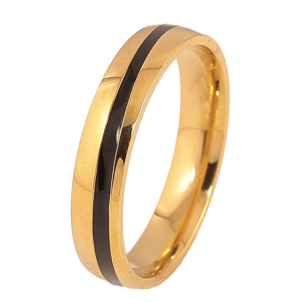 Кольцо Xuping TTM Stainless Steel цвет 14К "Узор полоса черной эмалью" шир. 4мм