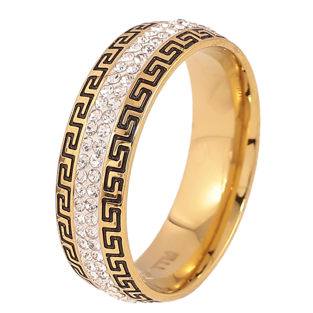 Кольцо Xuping TTM Stainless Steel цвет 14К "Узор с кристаллами и меандровыми линиями", шир. 6мм