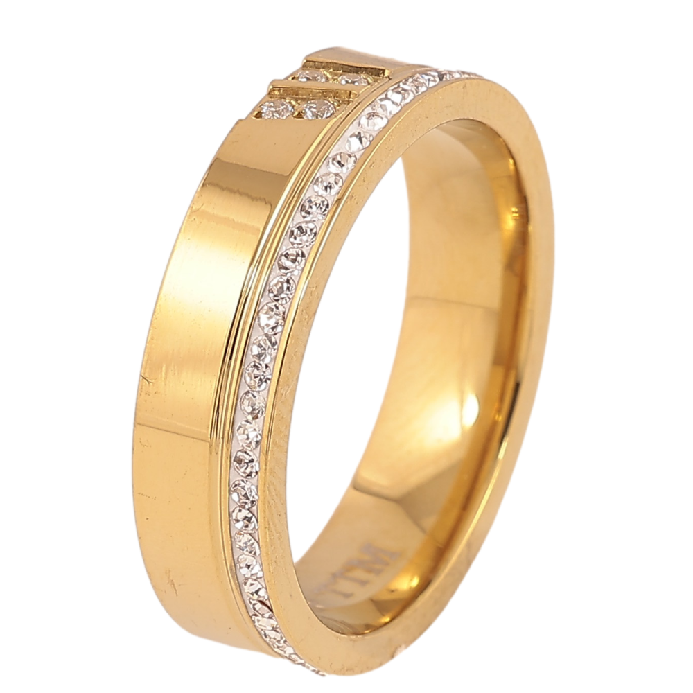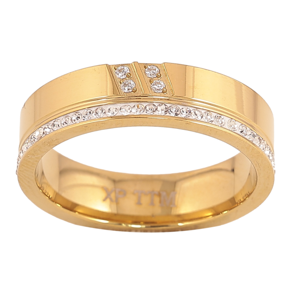Кольцо Xuping TTM Stainless Steel цвет 14К "Узор с кристаллами" шир. 5мм