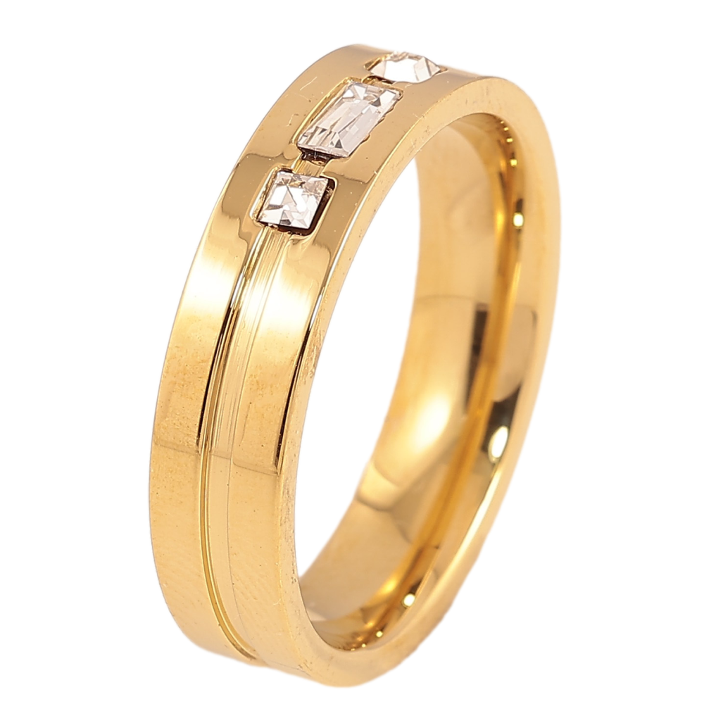 Кольцо Xuping TTM Stainless Steel цвет 14К "Узор с кристаллами" шир. 5мм
