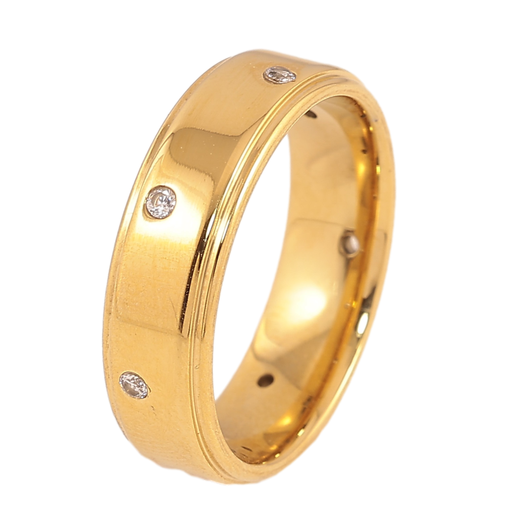 Кольцо Xuping TTM Stainless Steel цвет 14К "Узор с кристаллами" шир. 6мм