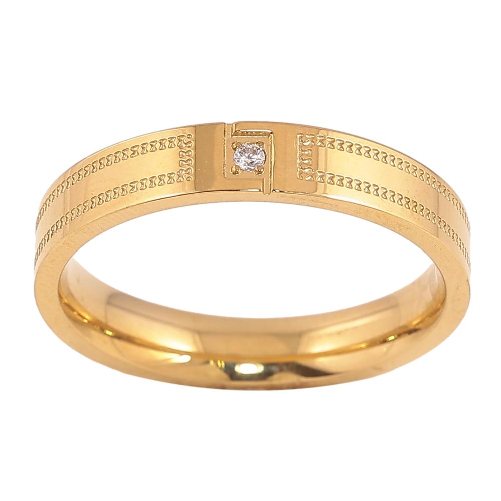 Кольцо Xuping TTM Stainless Steel цвет 14К "Узор с кристаллом" шир. 4мм