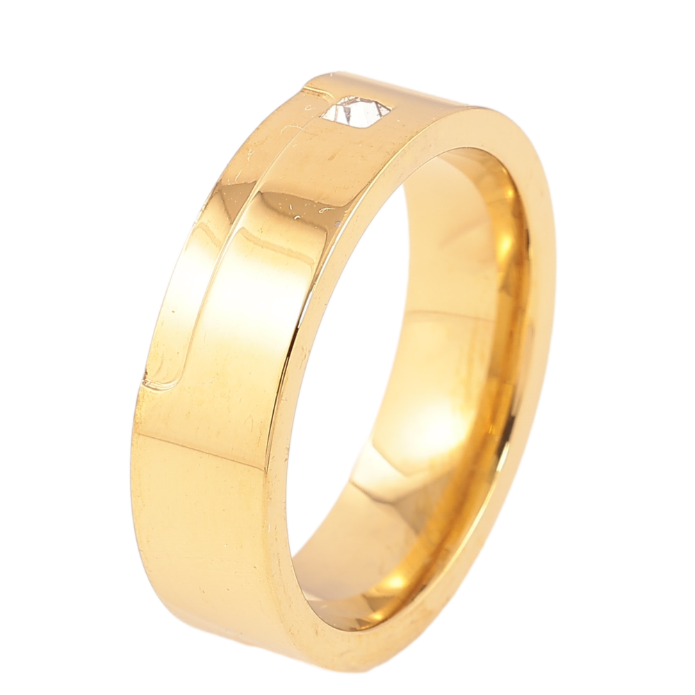 Кольцо Xuping TTM Stainless Steel цвет 14К "Узор с кристалом" шир. 6мм