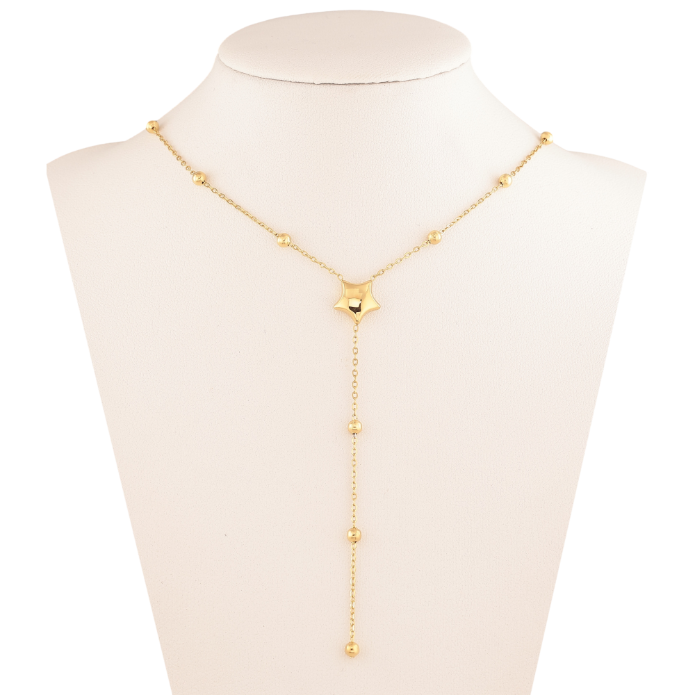 Колье Нержавеющая сталь "Цепочка с звездой и бусинами" длина 41-46см х 1-3мм