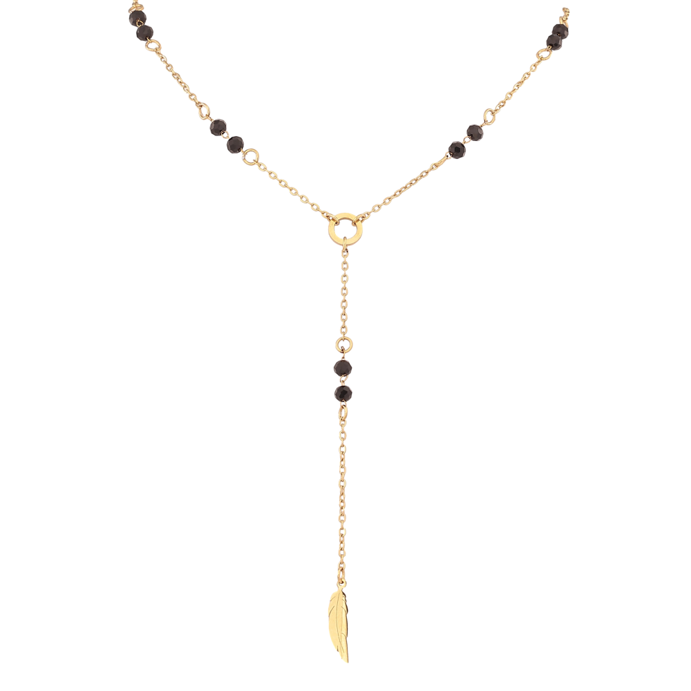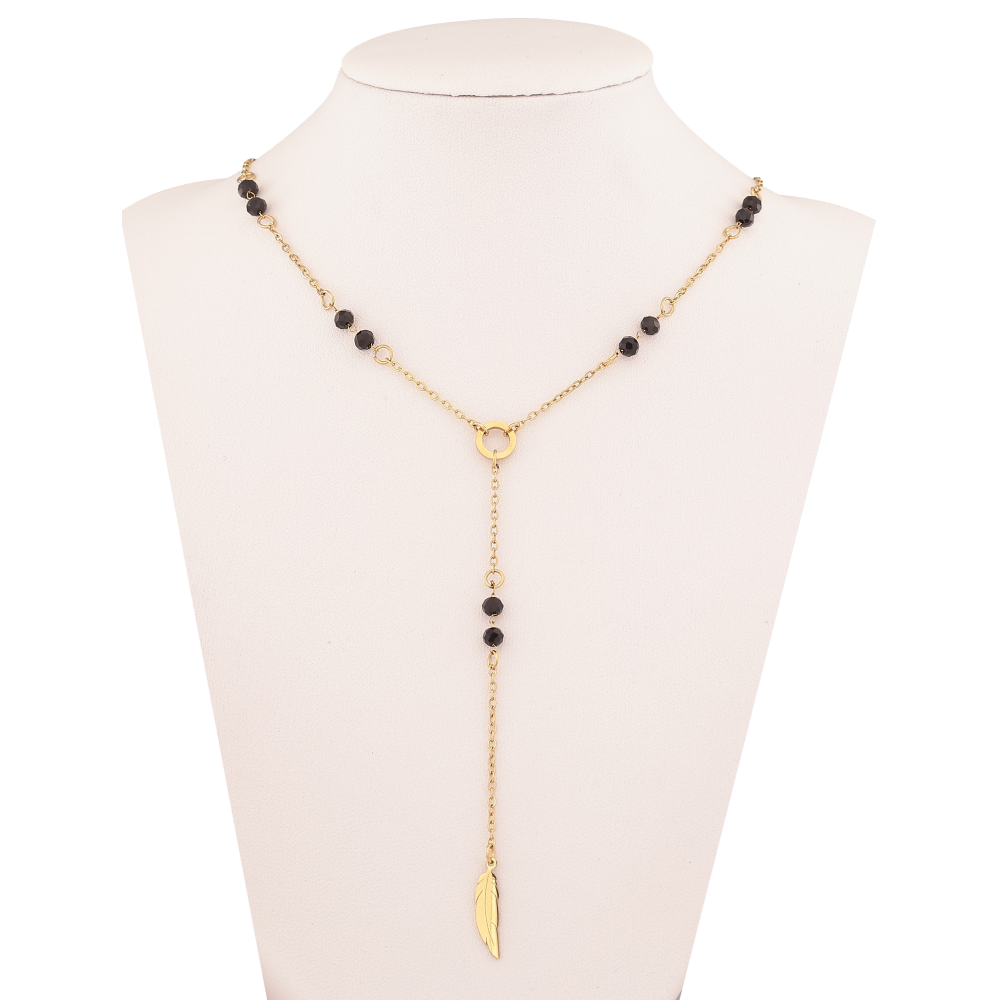 Колье Xuping ТТМ Stainless Steel цвет 14К "Цепочка с черными бусинами и пером" длина 43-48см х 1.5-3мм