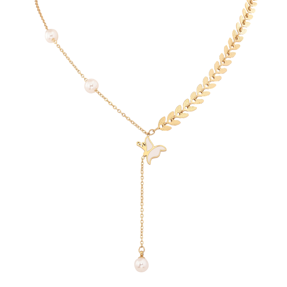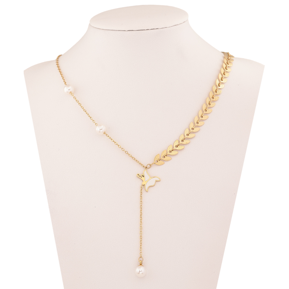 Колье Xuping ТТМ Stainless Steel цвет 14К "Бабочка с жемчужинами" длина 44-48см х 1.5-7мм