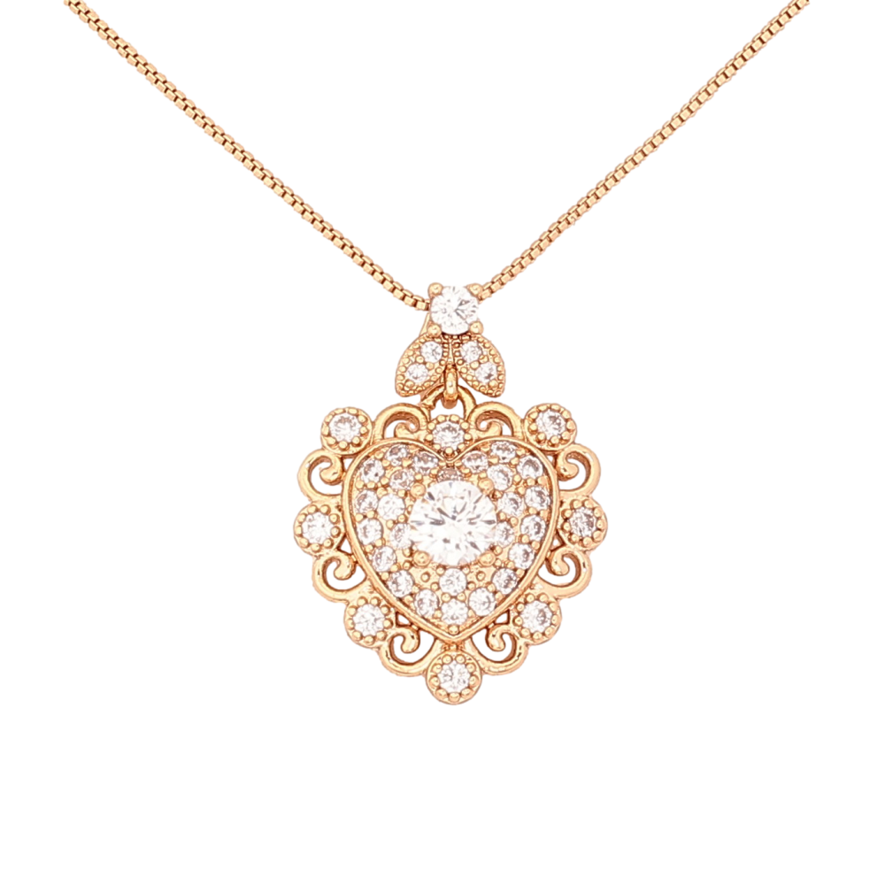 Кулон на цепочке Xuping цвет Позолота 18К "Сердечко с кристаллами" длина 46см х 1мм
