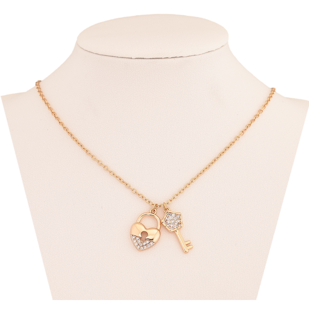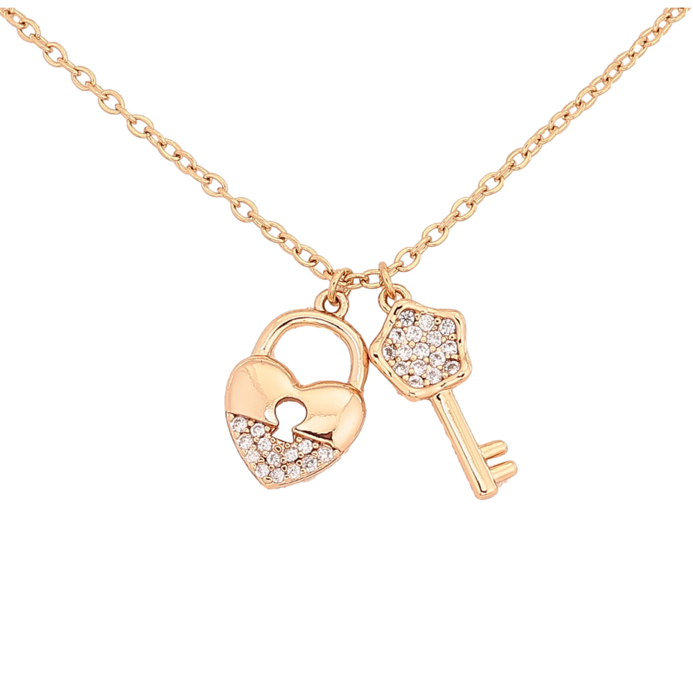 Кулон на цепочке Xuping цвет Позолота 18К "Замочек-сердечко с ключиком" длина 43-46см х 2мм